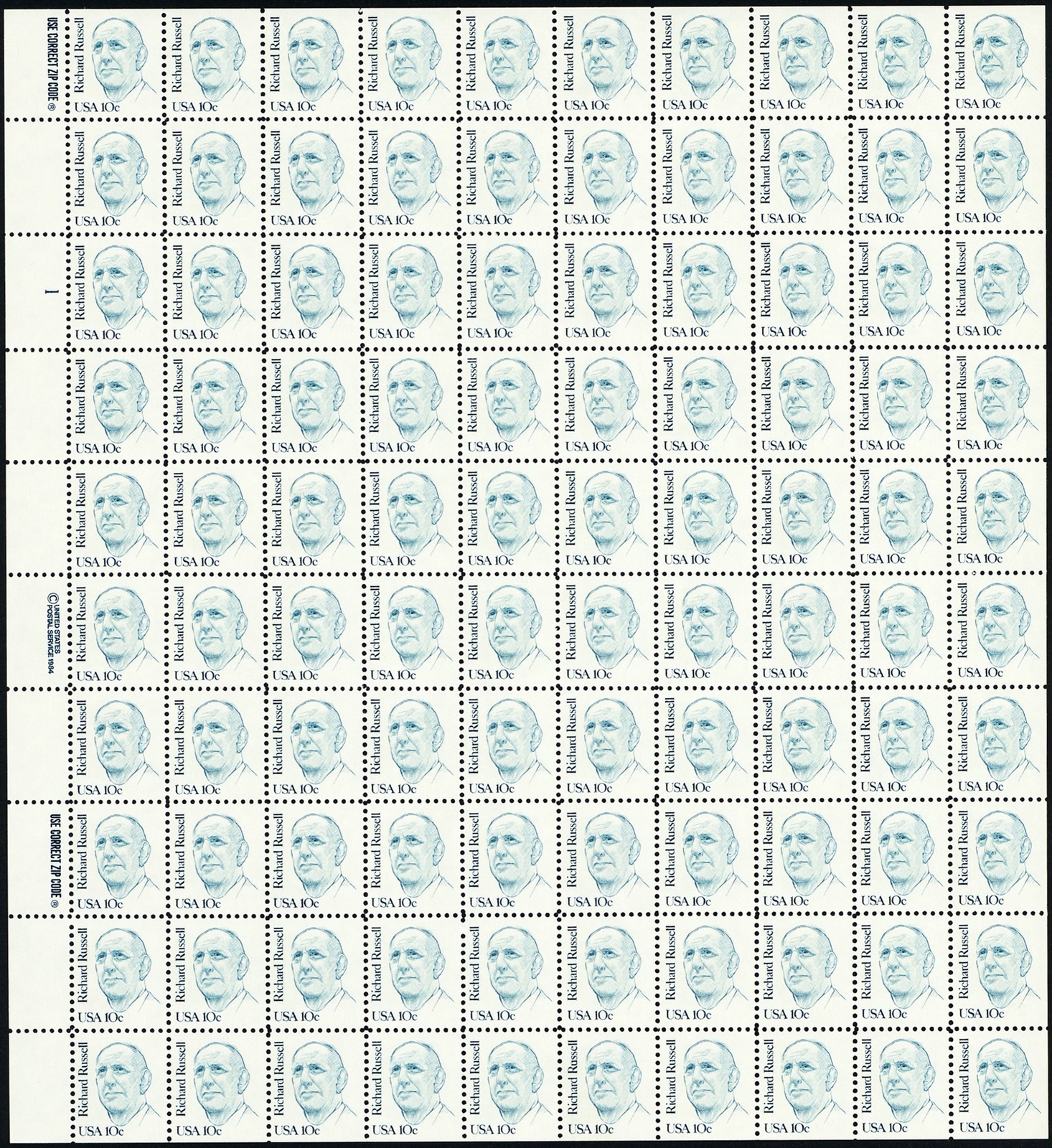 Richard Russell Sheet of One Hundred 10 Cent Postage Stamps Scott 1853