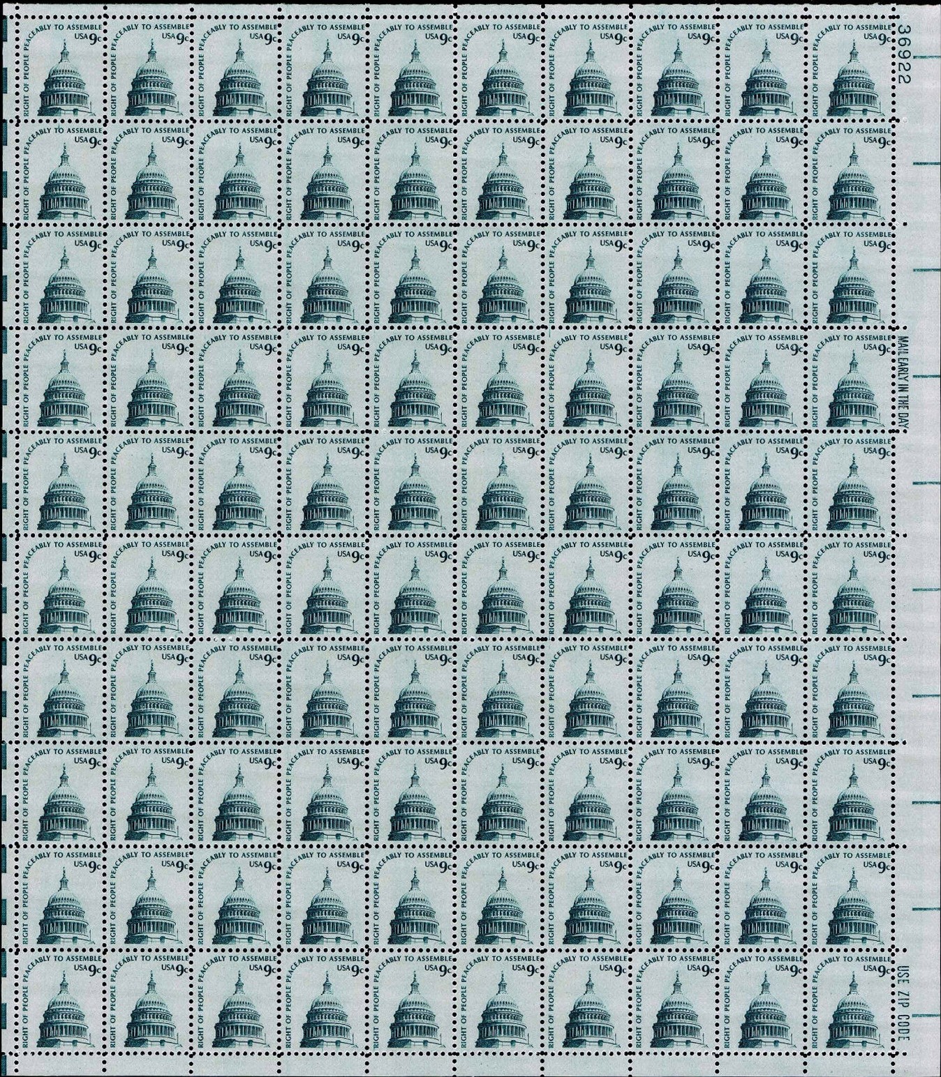 Right to Peaceful Assembly Sheet of One Hundred 9 Cent Postage Stamps Scott 1591