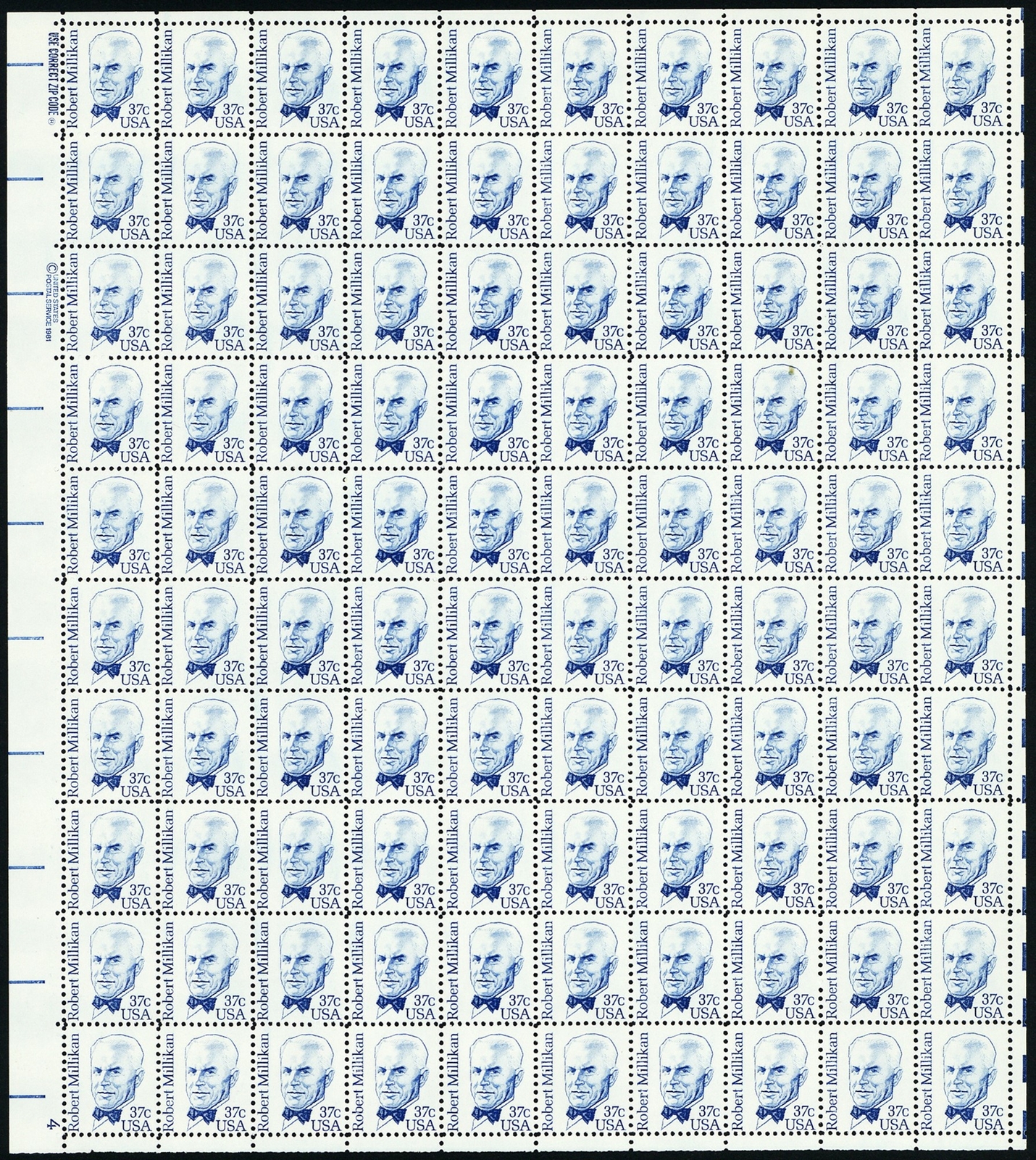 Robert Millikan Sheet of One Hundred 37 Cent Postage Stamps Scott 1866