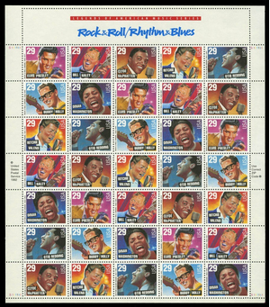 Rock and Roll Rhythm and Blues Sheet of Thirty Five 29 Cent Stamps Scott 2724-30