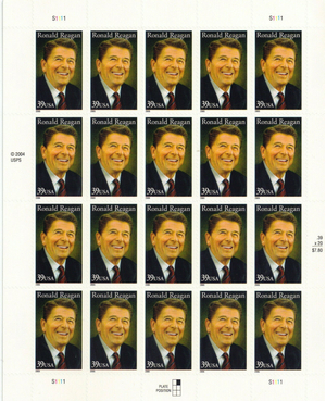 Ronald Reagan Sheet of Twenty 39 Cent Postage Stamps Scott 4078