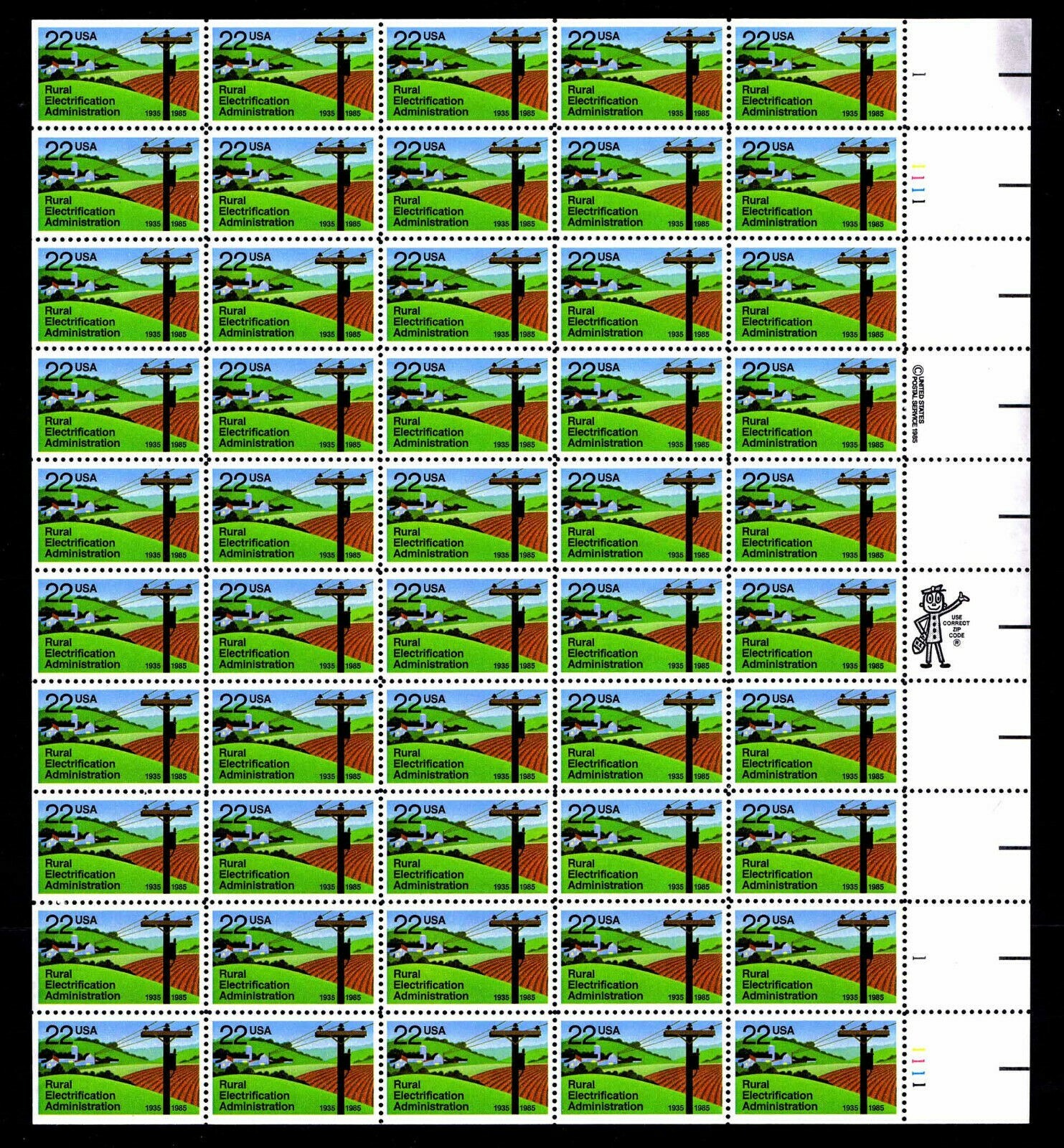 Rural Electrification Administration Sheet of Fifty 22 Cent Stamps Scott 2144