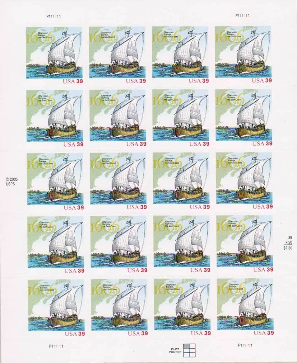 Samuel De Champlain Sheet of Twenty 39 Cent Postage Stamps Scott 4073