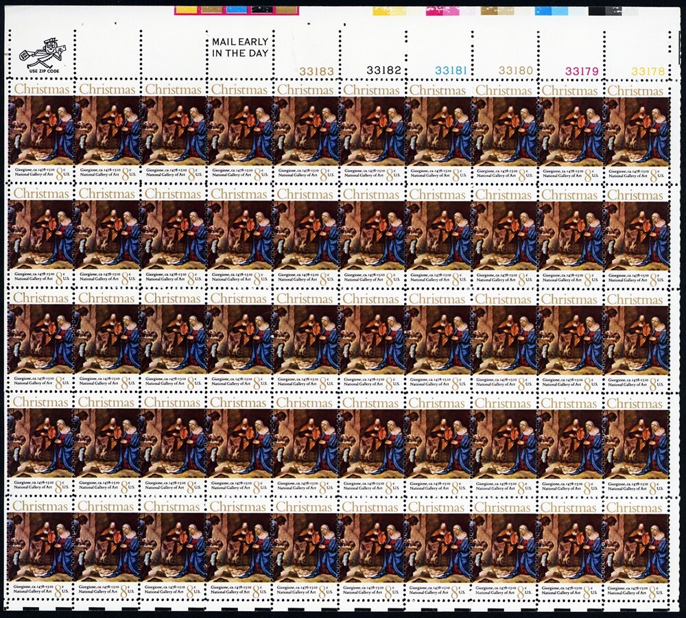 Scott 1444, 8¢ Christmas Nativity - Full Sheet of 50 Postage Stamps
