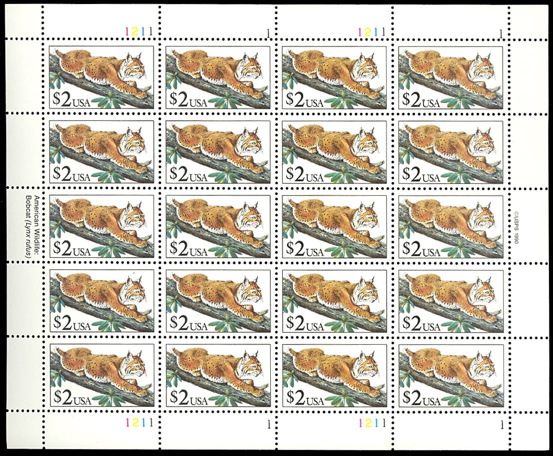 Scott 2482 $2 Bobcat Full Sheet of 20 Stamps Mint NH - Stuart Katz