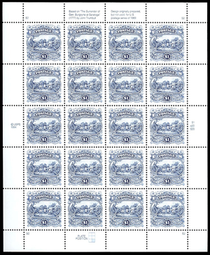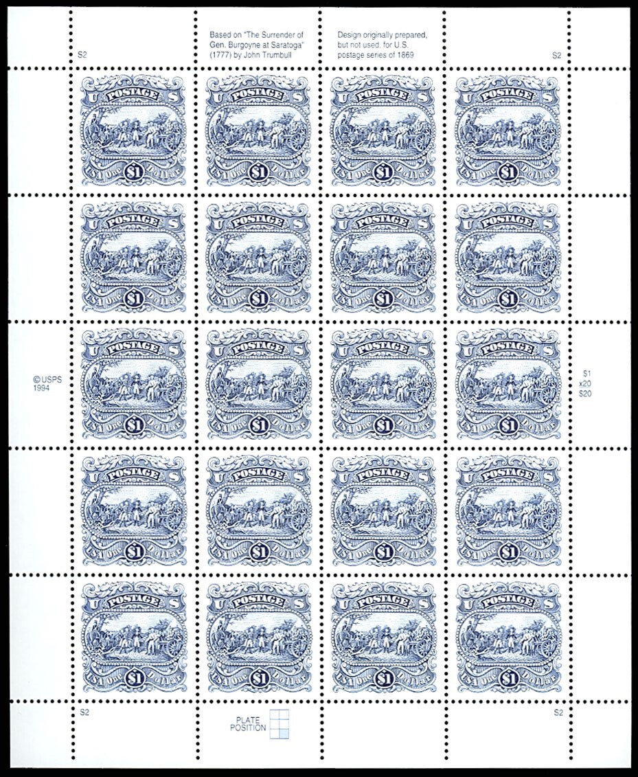 Scott 2590, $1 Surrender at Saratoga Full Sheet of 20 Stamps - Stuart Katz