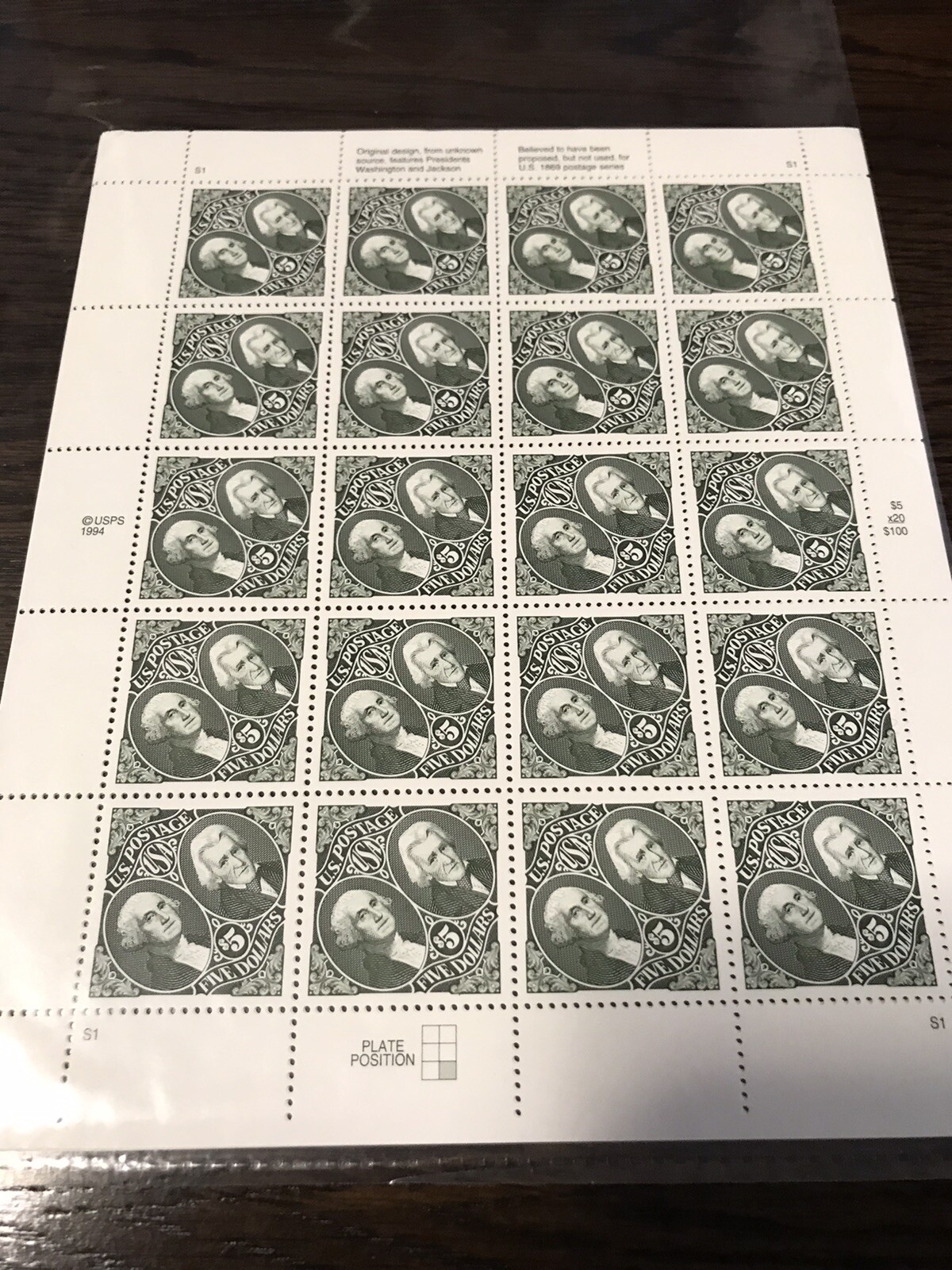 Scott#2592, $5 Washington Jackson Sheet of 20 Stamps MNH-1994.