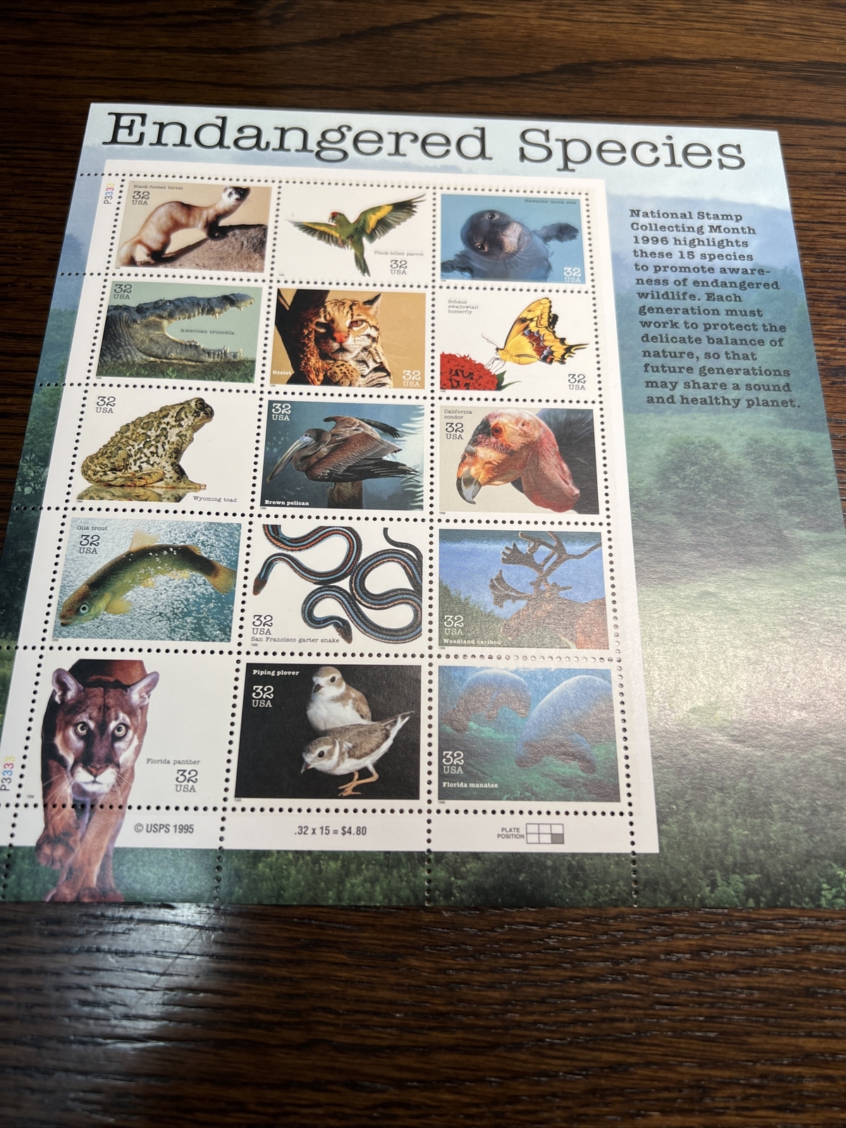Scott# 3105 Endangered Species sheet of 15 Stamps MNH-1996.