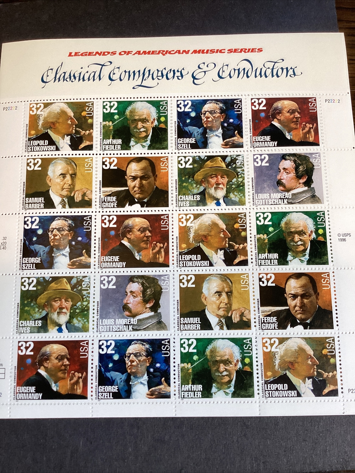 Scott# 3158-65 Composers and Conductors pane of 20 MNH-1997-US.