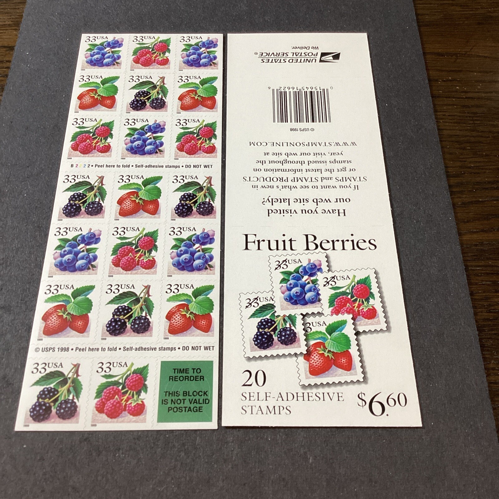 Scott# 3294 - 3297 Fruit Berries-Booklet Of 20 Stamps-MNH-1999-US. Shipped with USPS Ground Advantage.