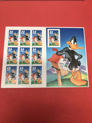 SCOTT 3306 - 33 CENT DAFFY DUCK REGULAR SOUVENIR SHEET OF 10 MNH-1999.