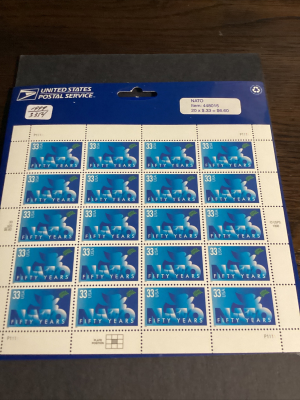 Scott# 3354-33 cent-NATO 50th Anniversary-Sheet Of 20 Stamps-MNH-1999-NIP-US.