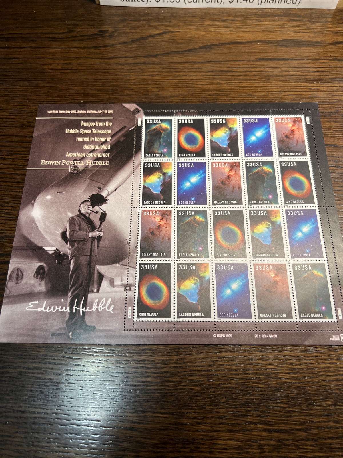 SCOTT #3384-88 (33c) Edwin Powell Hubble - 1999-MNH-Sheet Of 20 Stamps.