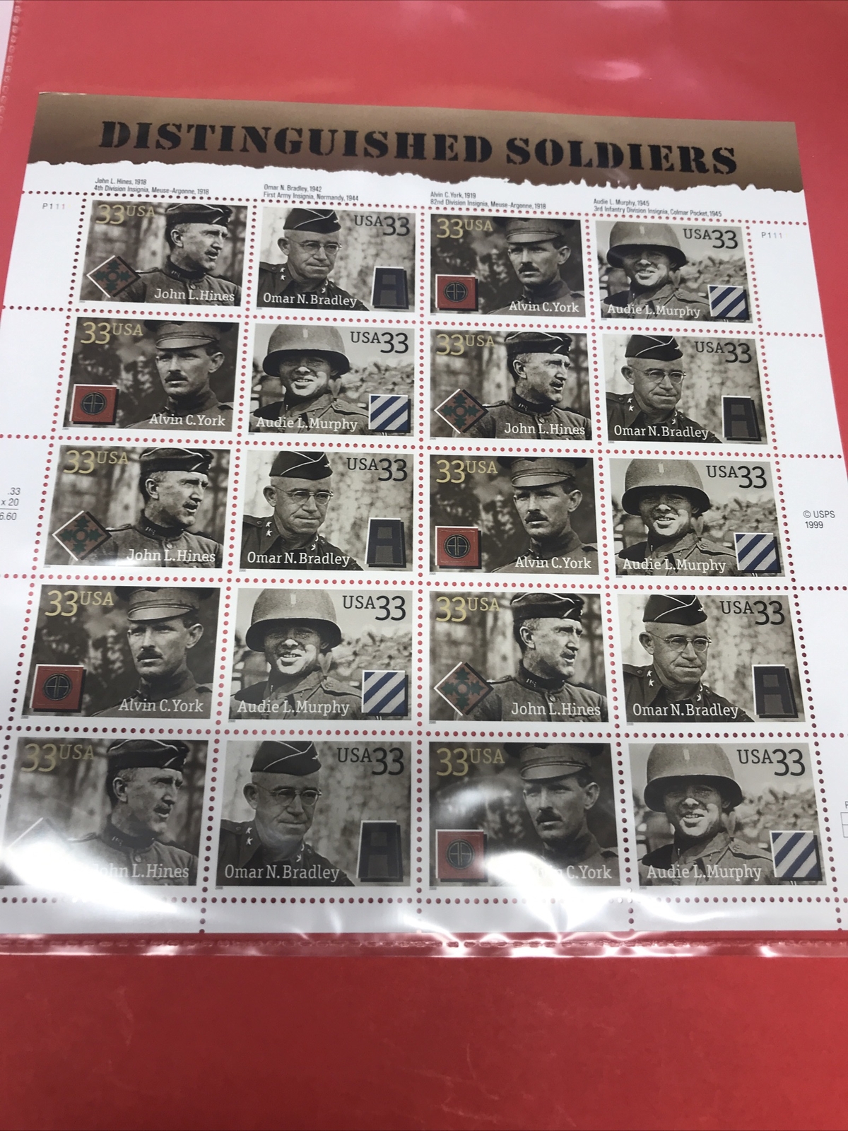 SCOTT 3393-96 - 33 Cent DISTINGUISHED SOLDIERS SHEET OF 20 MNH -2000.