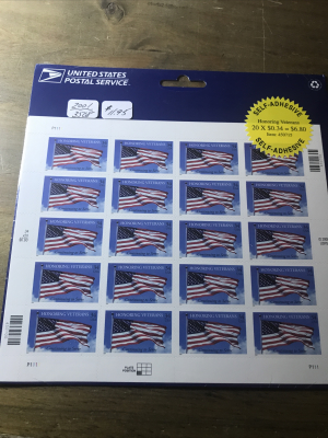 Scott #3508; 34 Cent Flag Honoring Veterans Pane of 20 MNH(2001)NIP