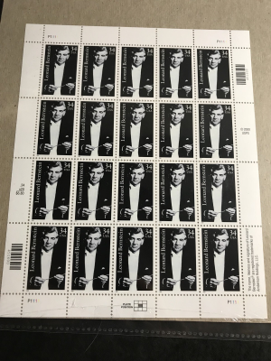 Scott 3521 Leonard Bernstein Music Pane of 20 Mint NH(2001)