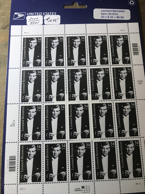 SCOTT #3521 MNH Sheet Of 20 Stamps (2000)NIP Leonard Bernstein. Shipped with USPS First Class.