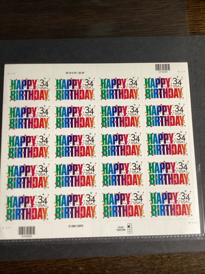 Scott #3558 Happy Birthday Sheet Of 20 Stamps-MNH-2002-US.