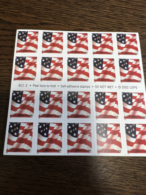 Scott#3623a US Flag-MNH First Class (37 cent) Booklet Sheet of 20 (2002).