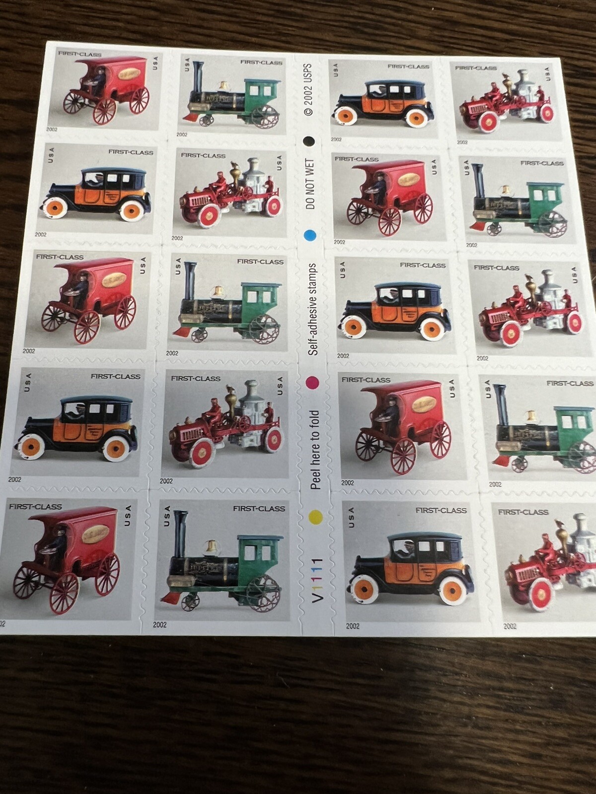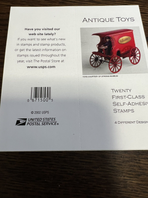 Scott # 3626-29 First Class Antique Toys - Sheet of (20) MNH (2002).