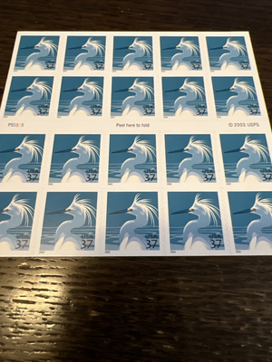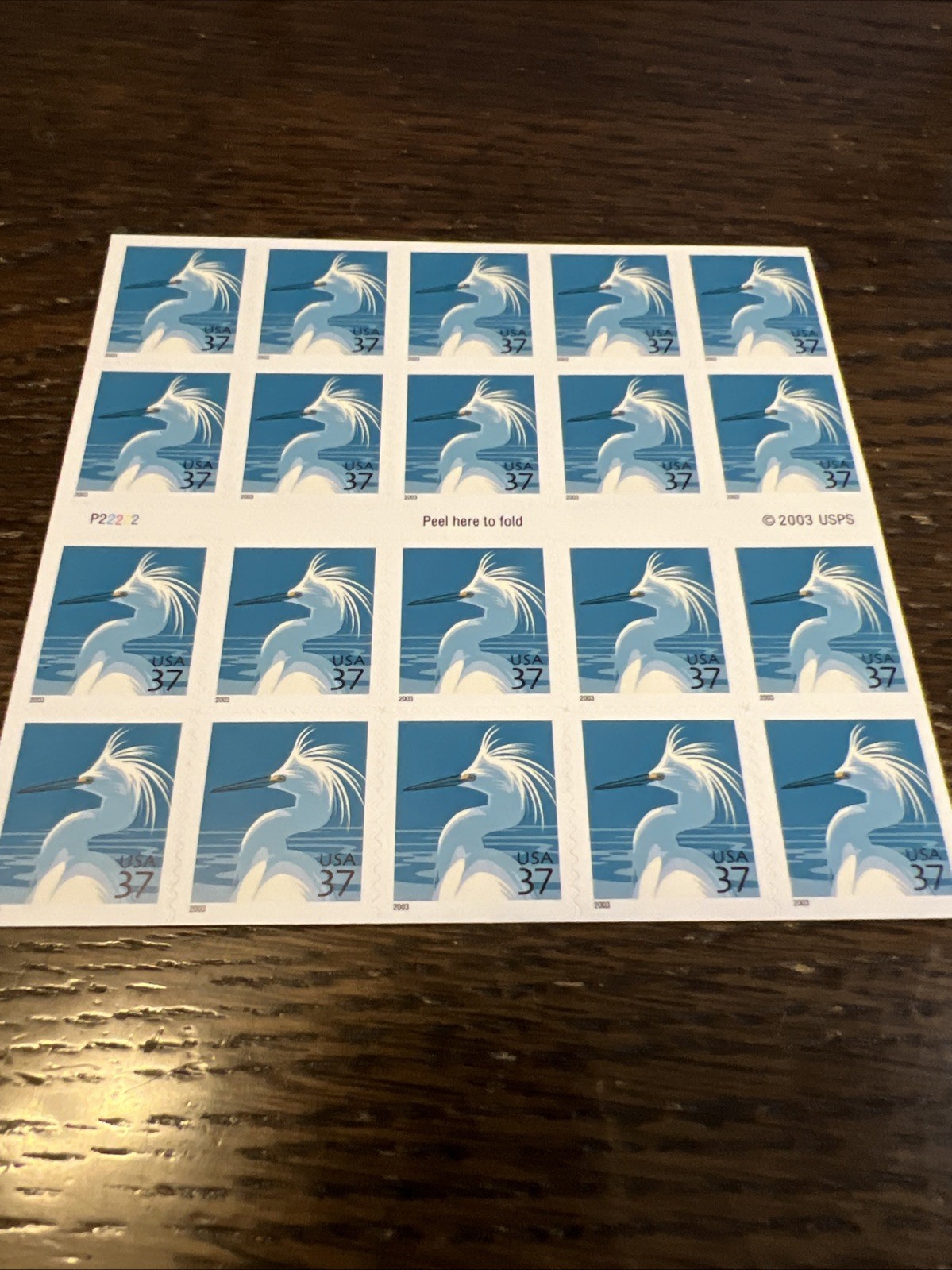 Scott#3830A-Snowy Egret Booklet Of 20 stamps-MNH-2003-US. Shipped with USPS Ground Advantage. Choice of P1,2 or 5