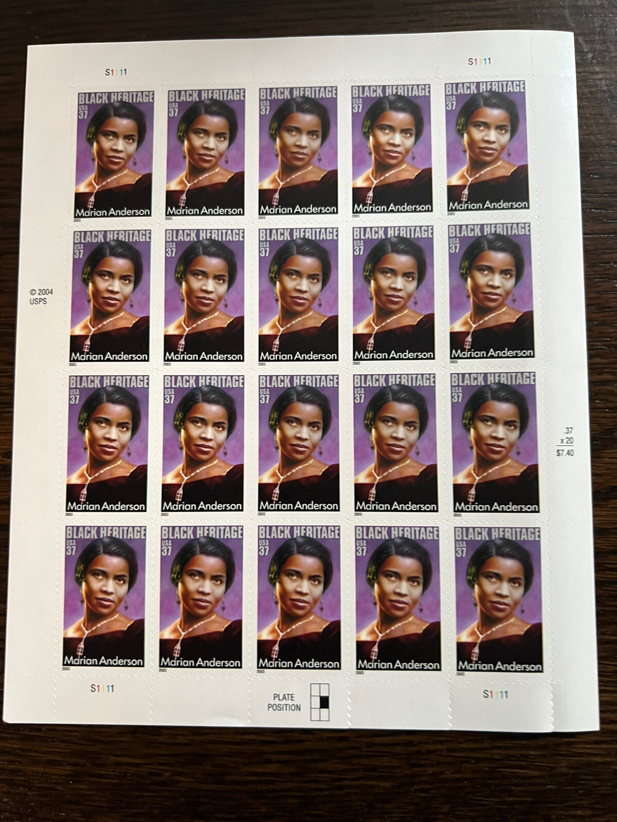 Scott #3896 -- Black Heritage: Marian Anderson Sheet of 20 MNH-2005.