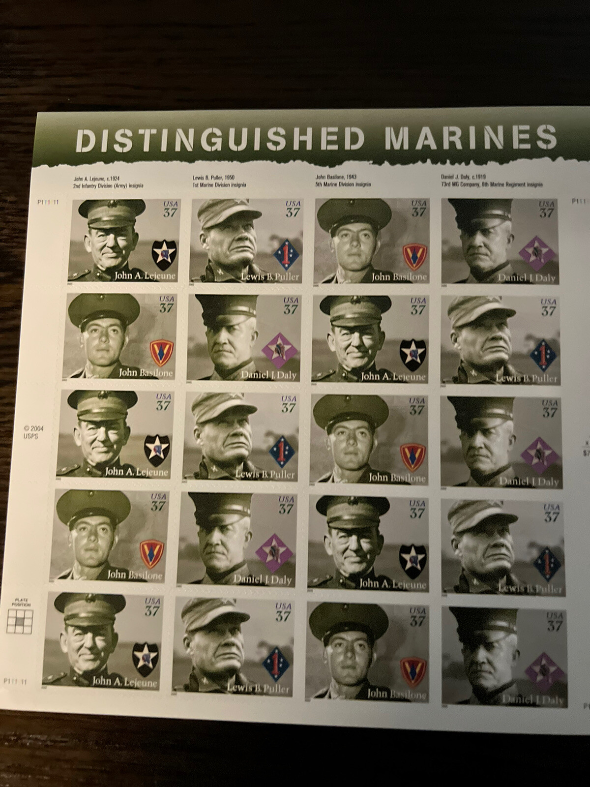Scott #3961-64 Distinguished Marines 37 cent 2005 full sheet MNH.
