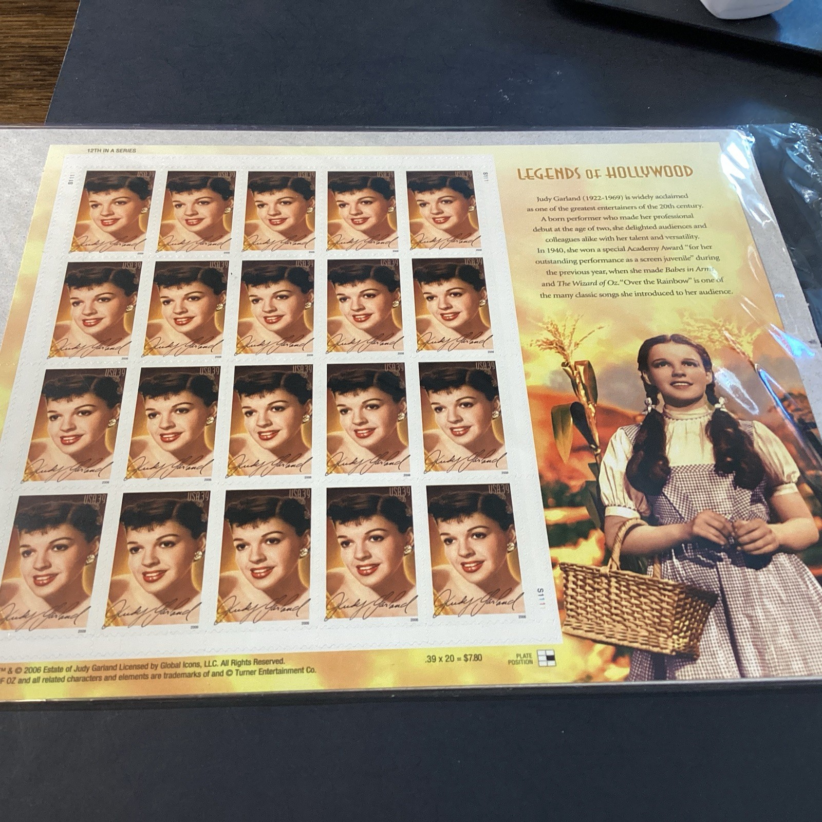 Scott# 4077 Judy Garland Legends of Hollywood MNH Sheet of 20 37c Stamps-NIP-US. Shipped with USPS Ground Advantage.