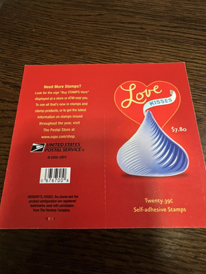 Scott#4122-39c Hershey's Kisses Booklet Pane of 20 Stamps MNH 2007.