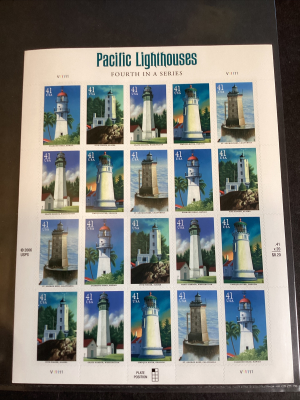 Scott#4146-50 Pacific Lighthouses Sheet of 20 Stamps-MNH-2007-US.