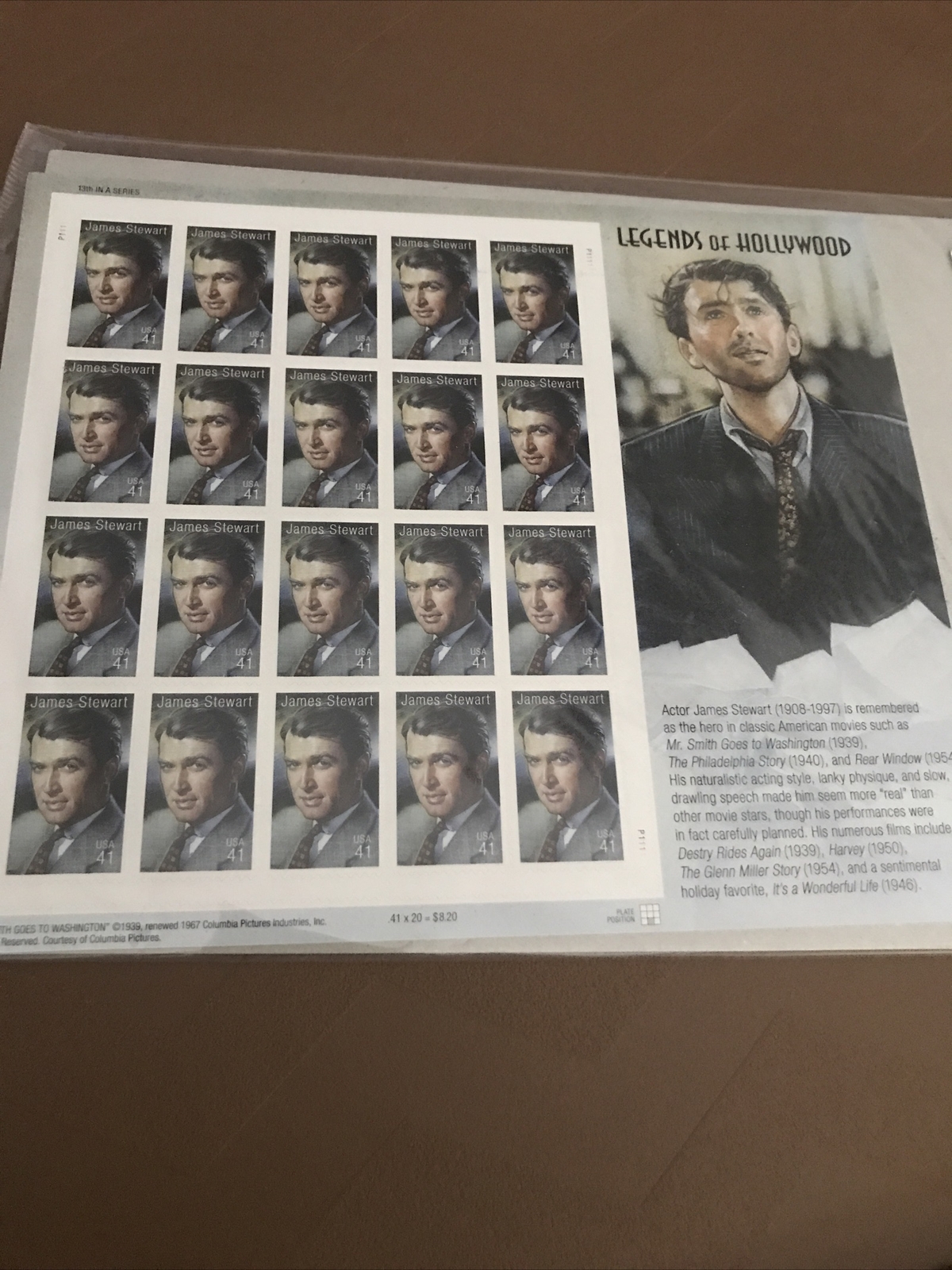 Scott #4197- 41¢ - JAMES STEWART - HOLLYWOOD LEGEND - Sheet of 20 - MNH(NIP)2007. Shipped with USPS First Class.