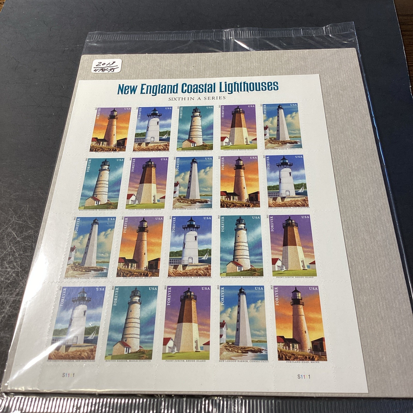 Scott# 4791-95 New England Lighthouses-2013-MNH-sheet of 20 Stamps-NIP-US. Shipped with USPS Ground Advantage.
