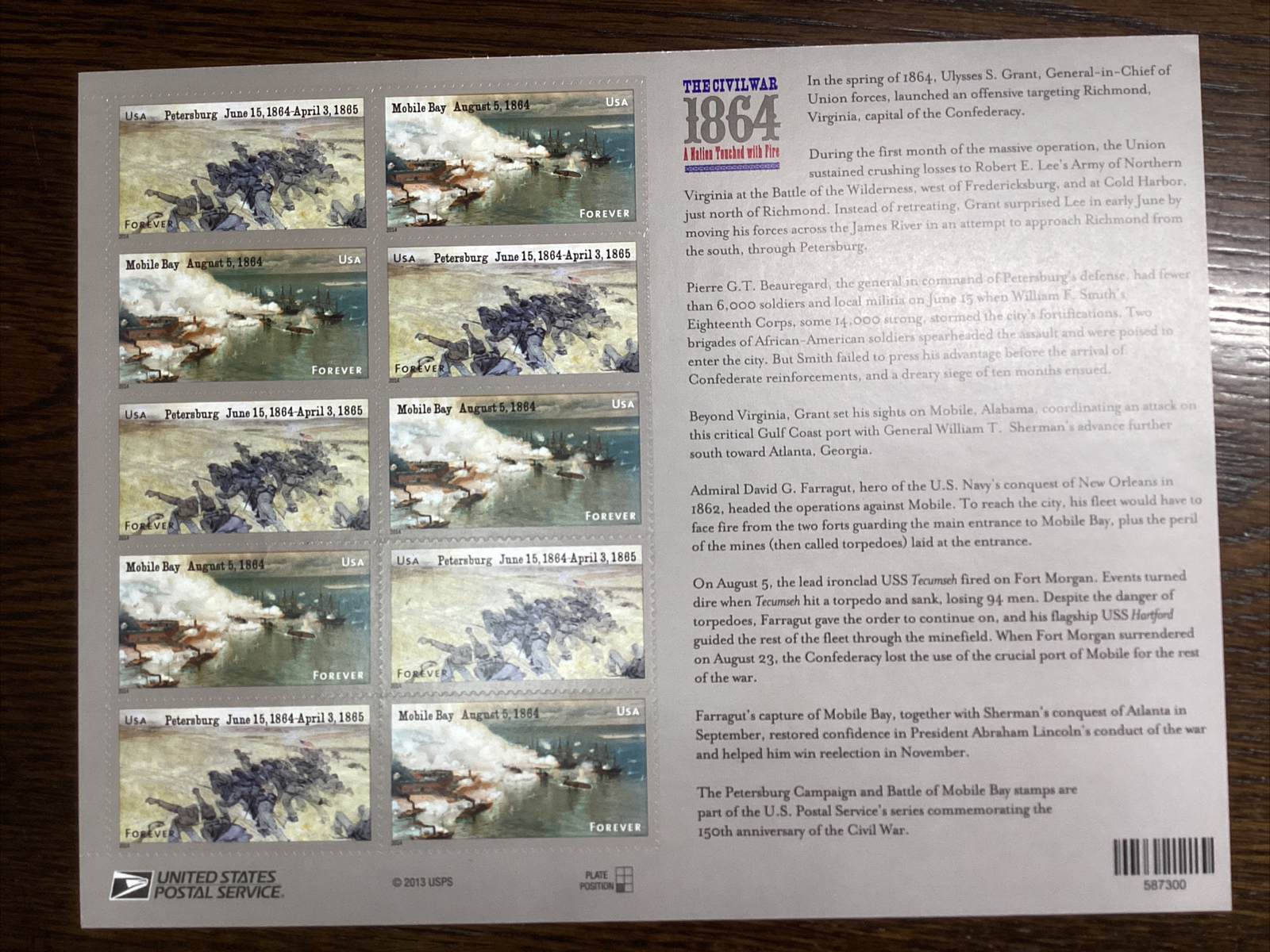 SCOTT#4910-11 THE CIVIL WAR 1864-A NATION TOUCHED WITH FIRE 12 STAMPSHEET-MNH-US.