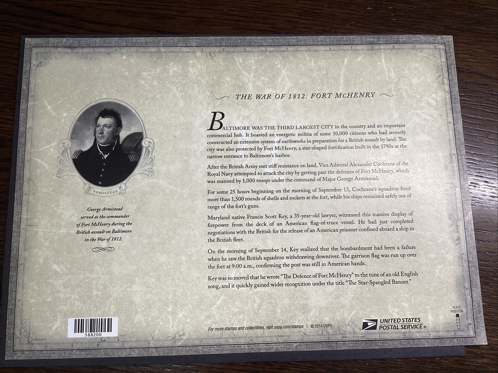 Scott#4921-The War of 1812: Fort McHenry Sheet of 20 Forever Stamps-MNH-2014-US.