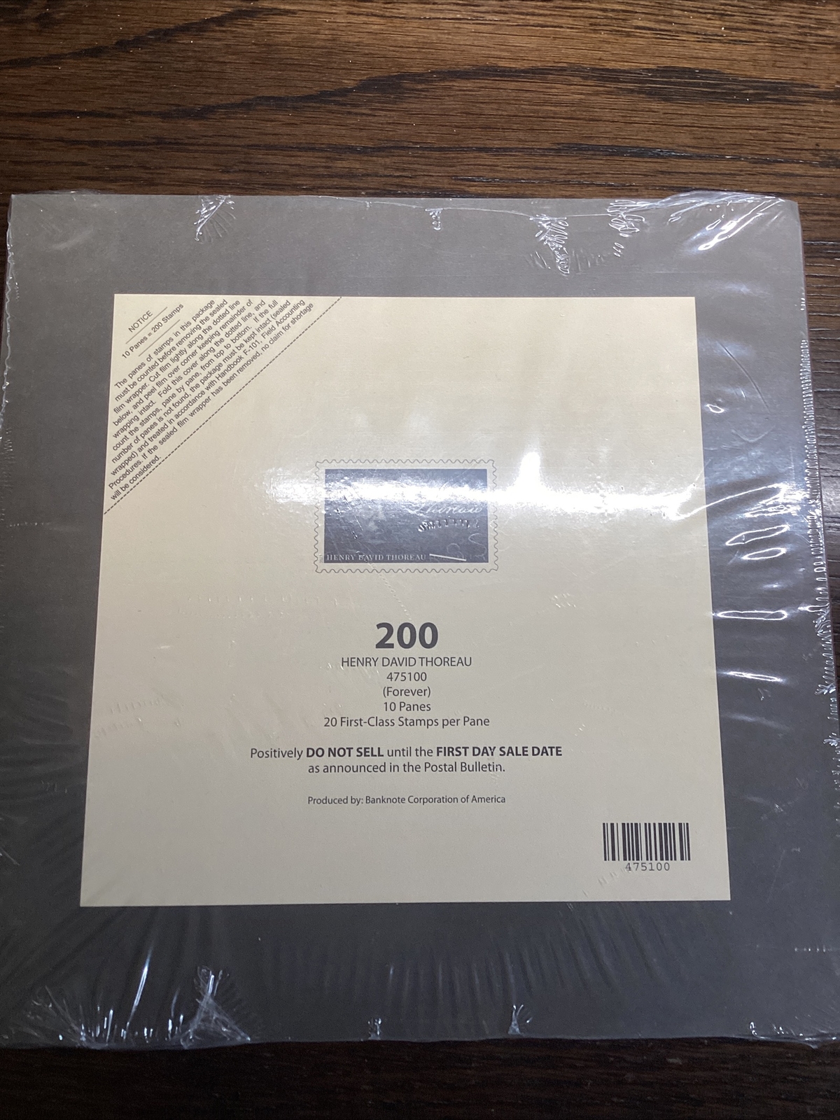 Scott#5202 Henry David Thoreau MNH-2017-Sheet Of 20 Stamps-(10 Sheets)NIP-US.