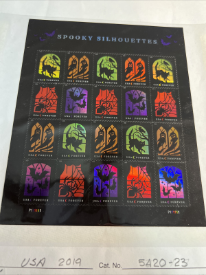 Scott# 5420-23 Spooky Silhouettes Sheet of 20 Forever Stamp-MNH-2019.