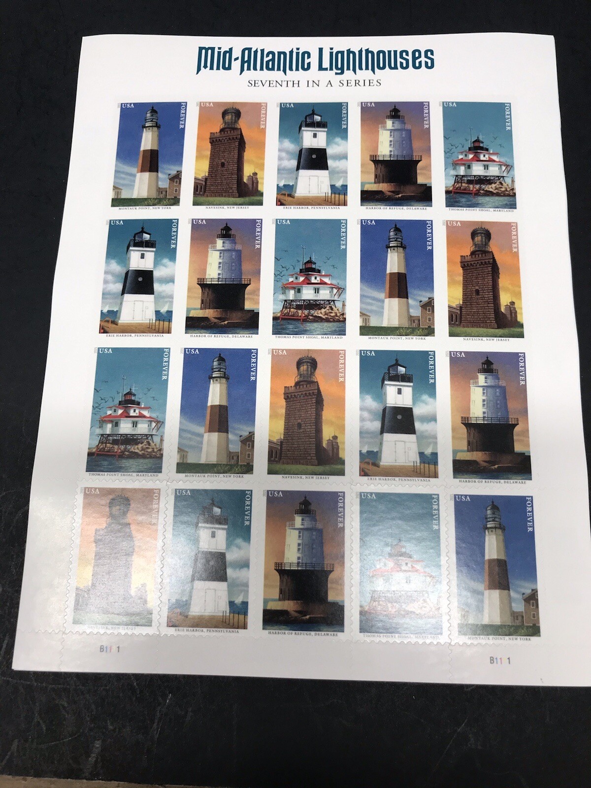 Scott#5621-25-Mid-Atlantic Lighthouses-Sheet Of 20 Stamps-MNH-2021.