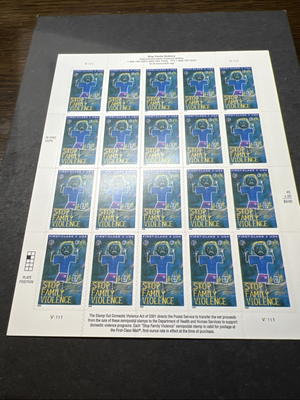 Scott #B3 Stop Family Violence Semi-Postal Full Sheet of 20 Stamps - MNH-2003-US. Shipped with USPS Ground Advantage.