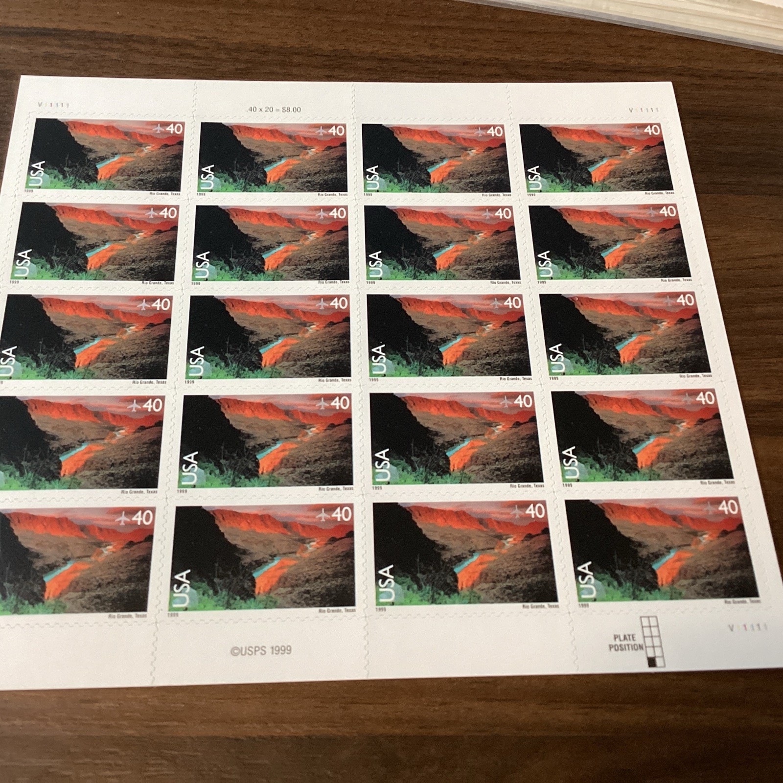 Scott #C134-40c Rio Grande Texas Sheet of 20 MNH Airmail Stamps-1999-US. Shipped with USPS Ground Advantage.