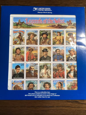 Scott#s 2869 & 2870 "LEGENDS of the WEST" Error & Revised Sheet - MNH-1994-US.