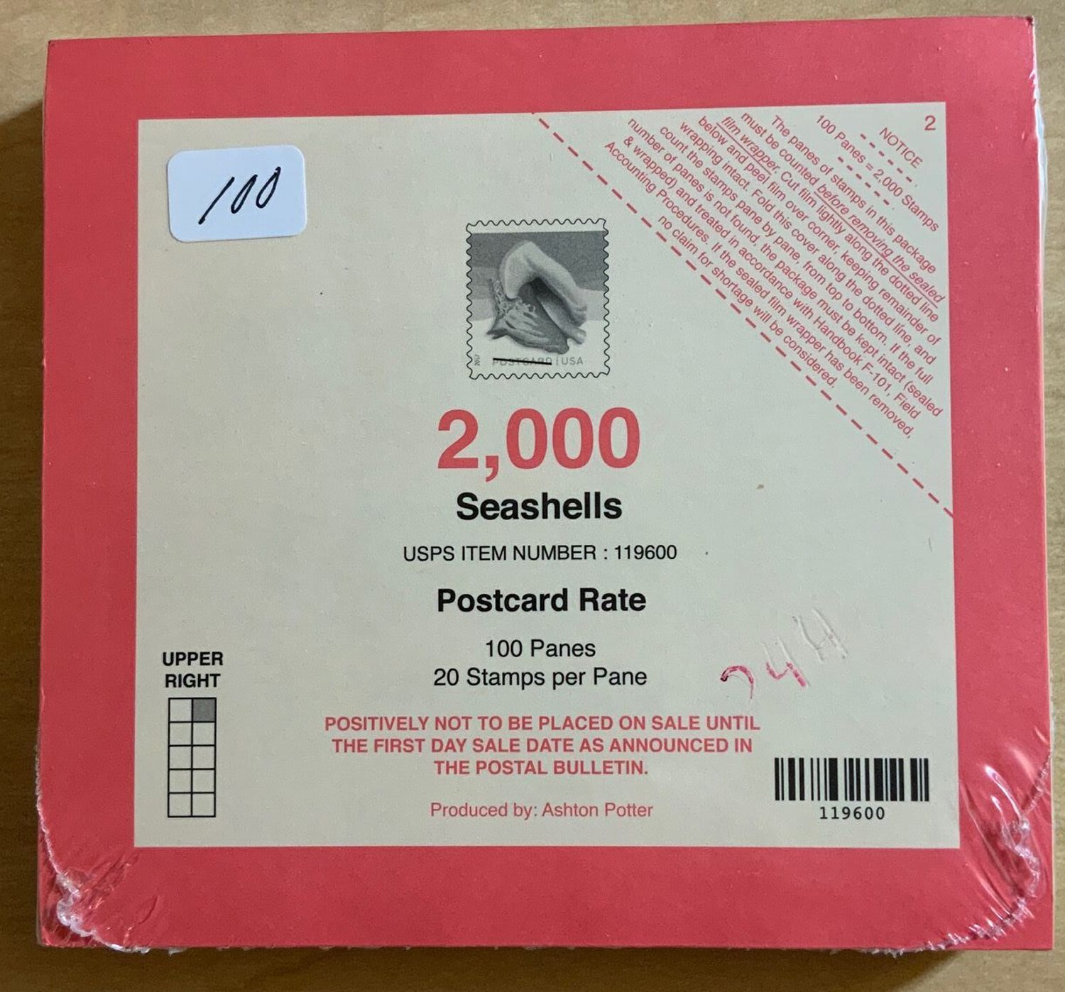 Seashells Sealed Pad of Postcard Stamps 100 Sheets (2000 Stamps) Scott 5166a