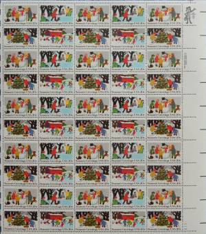 Season's Greetings Sheet of Fifty 20 Cent Postage Stamps Scott 2027-30