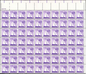 Ship Building Sheet of Seventy 3 Cent Postage Stamps Scott 1095