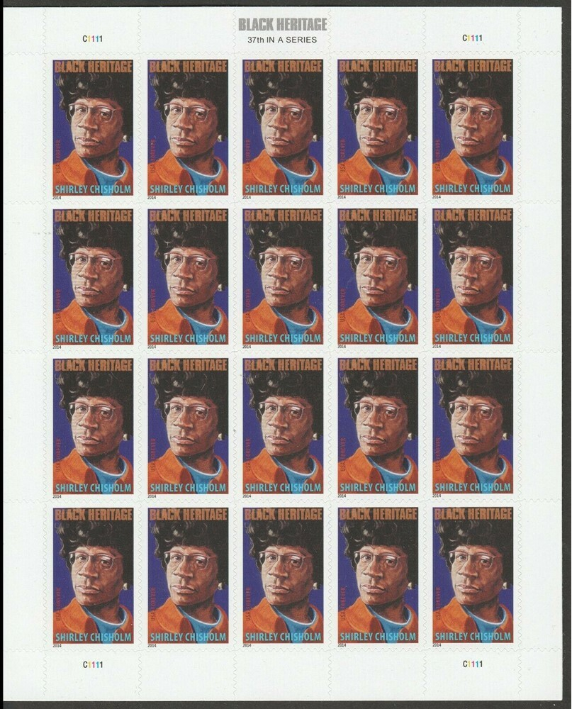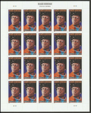 Shirley Chisholm Sheet of 20 Current Rate Postage Stamps Scott 4856