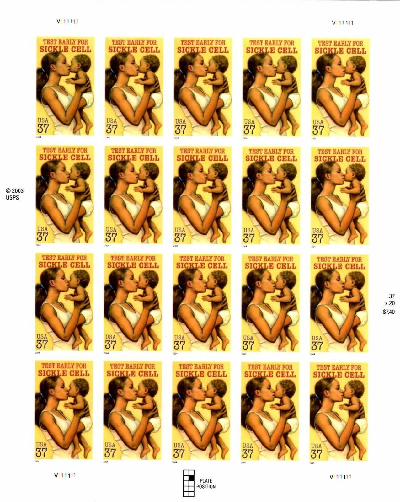 Sickle Cell Disease Awareness Sheet of Twenty 37 Cent Postage Stamps Scott 3877