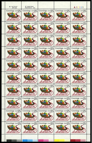 Sleigh and Presents Contemporary Christmas Sheet 29 Cent Stamps 2428