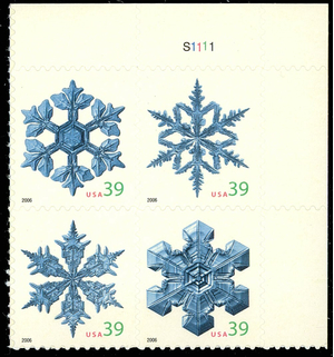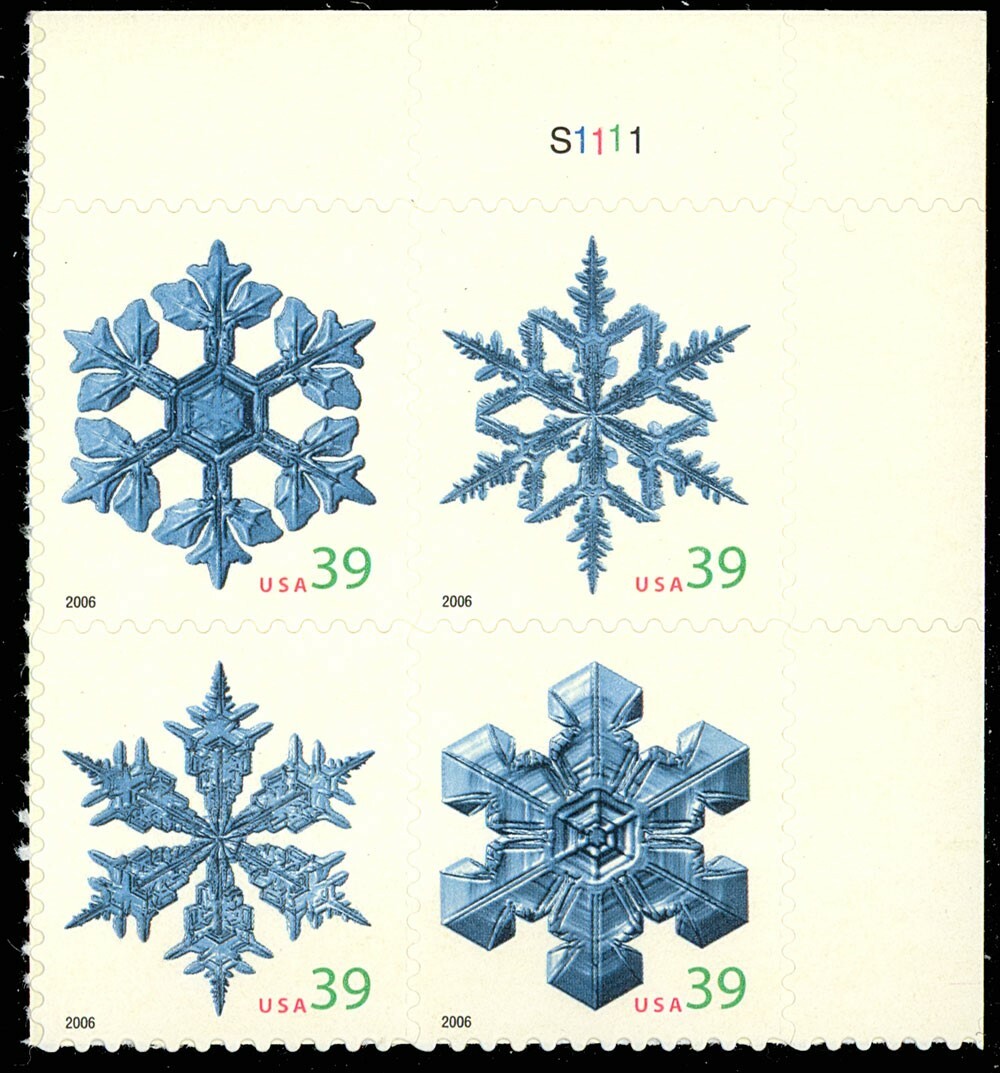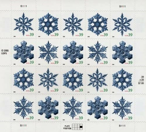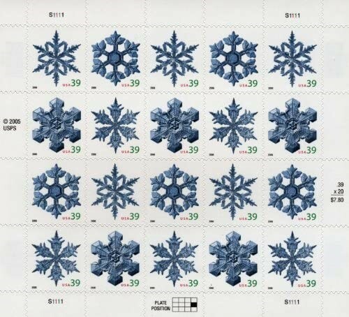Snowflakes Pane of Twenty 39 Cent Postage Stamps Scott 4101-04