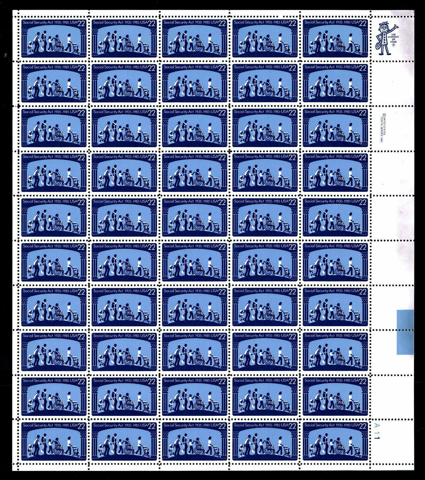 Social Security Act Sheet of Fifty 22 Cent Postage Stamps Scott 2153