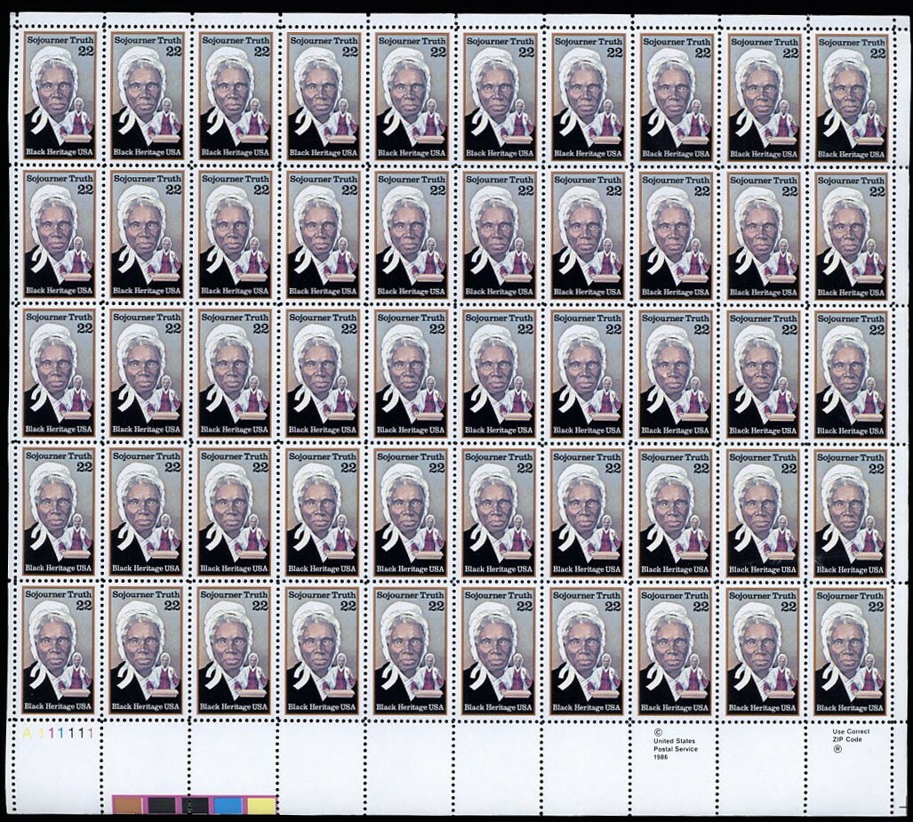 Sojourner Truth Full Sheet of Fifty 22 Cent Postage Stamps Scott 2203