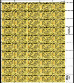 South Carolina Sheet of Fifty 6 Cent Postage Stamps Scott 1407